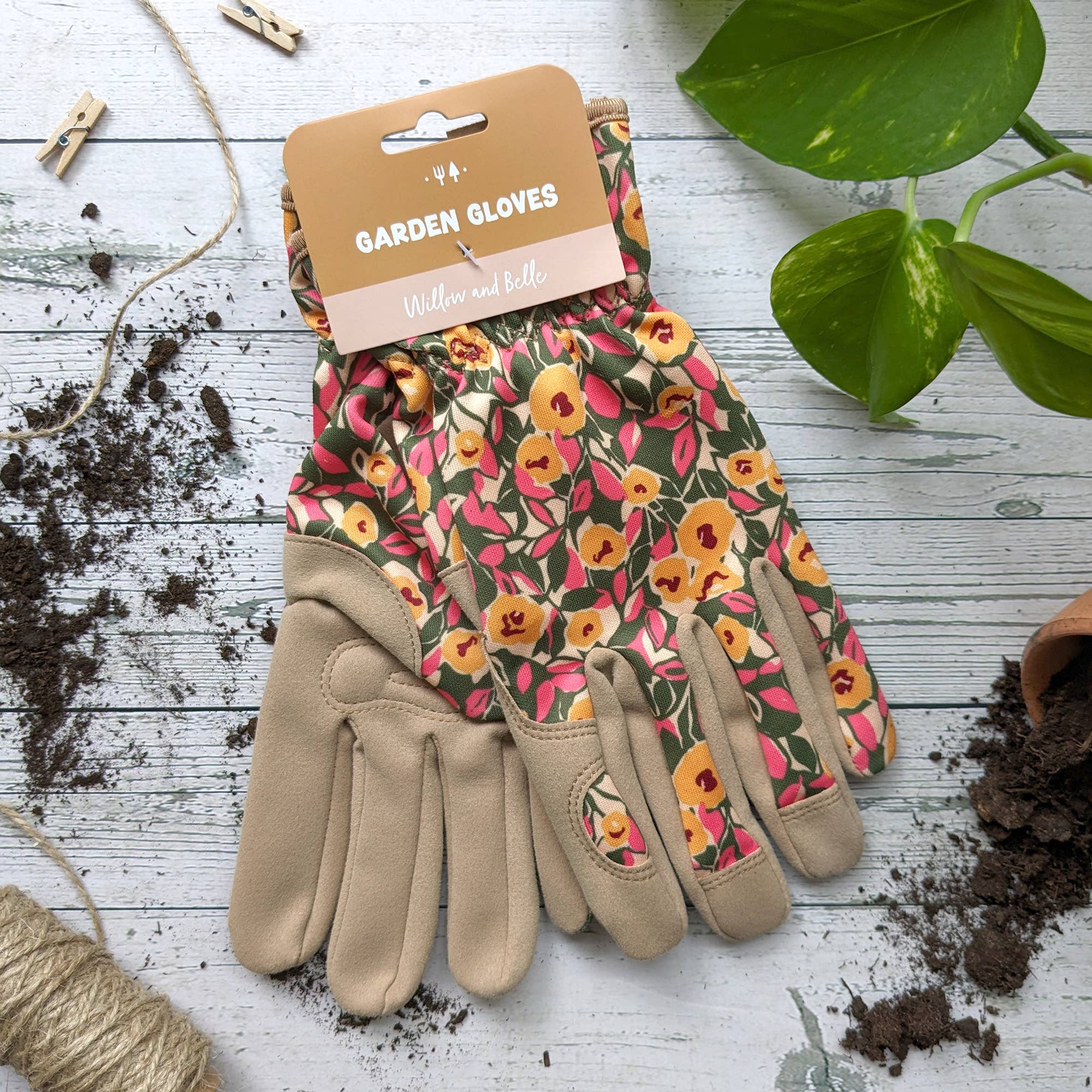 Willow & Belle Gardening Gloves - Mustard And Pink Flowers