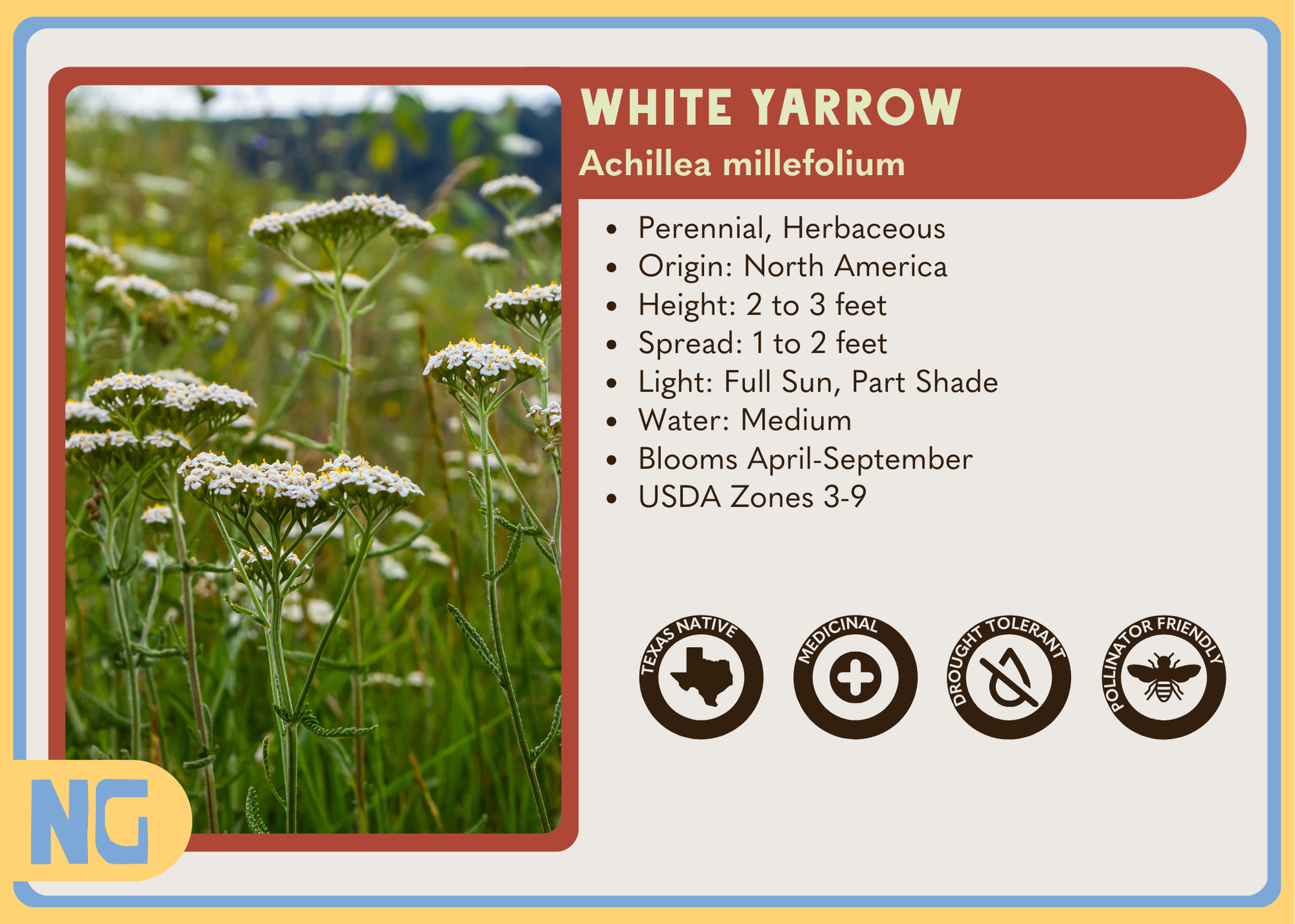 White Yarrow (Achillea millefolium) is a resilient and adaptable perennial, known for its fern-like, aromatic foliage and clusters of tiny white or pink flowers that bloom from spring to early fall. This versatile plant is not only valued for its ornamental appeal but also for its historical use in herbal medicine, where it was used to treat various ailments, including fevers and stomach disorders. Its fragrant foliage and flat-topped flower clusters make it a popular choice for garden borders, fresh or dried floral arrangements, and as a pollinator-friendly addition to wildflower meadows.